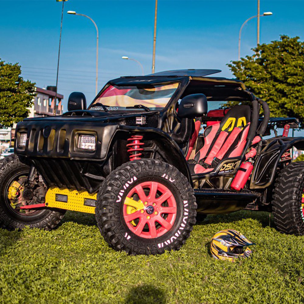 Ce Buggy K’GBEMU est spécialement conçu pour la performance et l’adrénaline. Grâce à son moteur puissant et à sa transmission robuste, il peut être utilisé sur divers terrains pour des courses ou des circuits explosifs ! Cet engin offre une combinaison parfaite entre plaisir et praticité. Il est assez polyvalent pour offrir des sorties en plein air, des balades sur la plage ou même une conduite quotidienne.